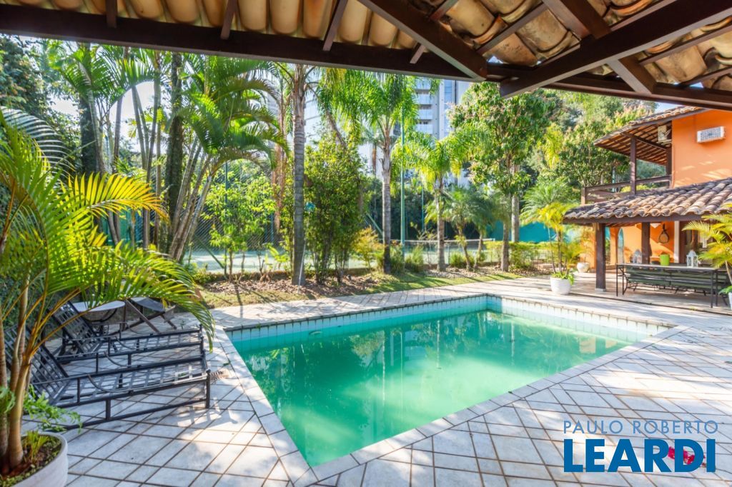 4 suítes, closet, amplo living, sala de estar, sala íntima, sala de jantar, sala de TV, hall, escritório, lareira, cozinha, copa, despensa, armários planejados, lavabo, ar condicionado, área de serviço, quadra de tênis, adega, espaço gourmet, churrasqueira, piscina, 4 vagas na garagem, área do terreno 1640 m², área construída 414 m².