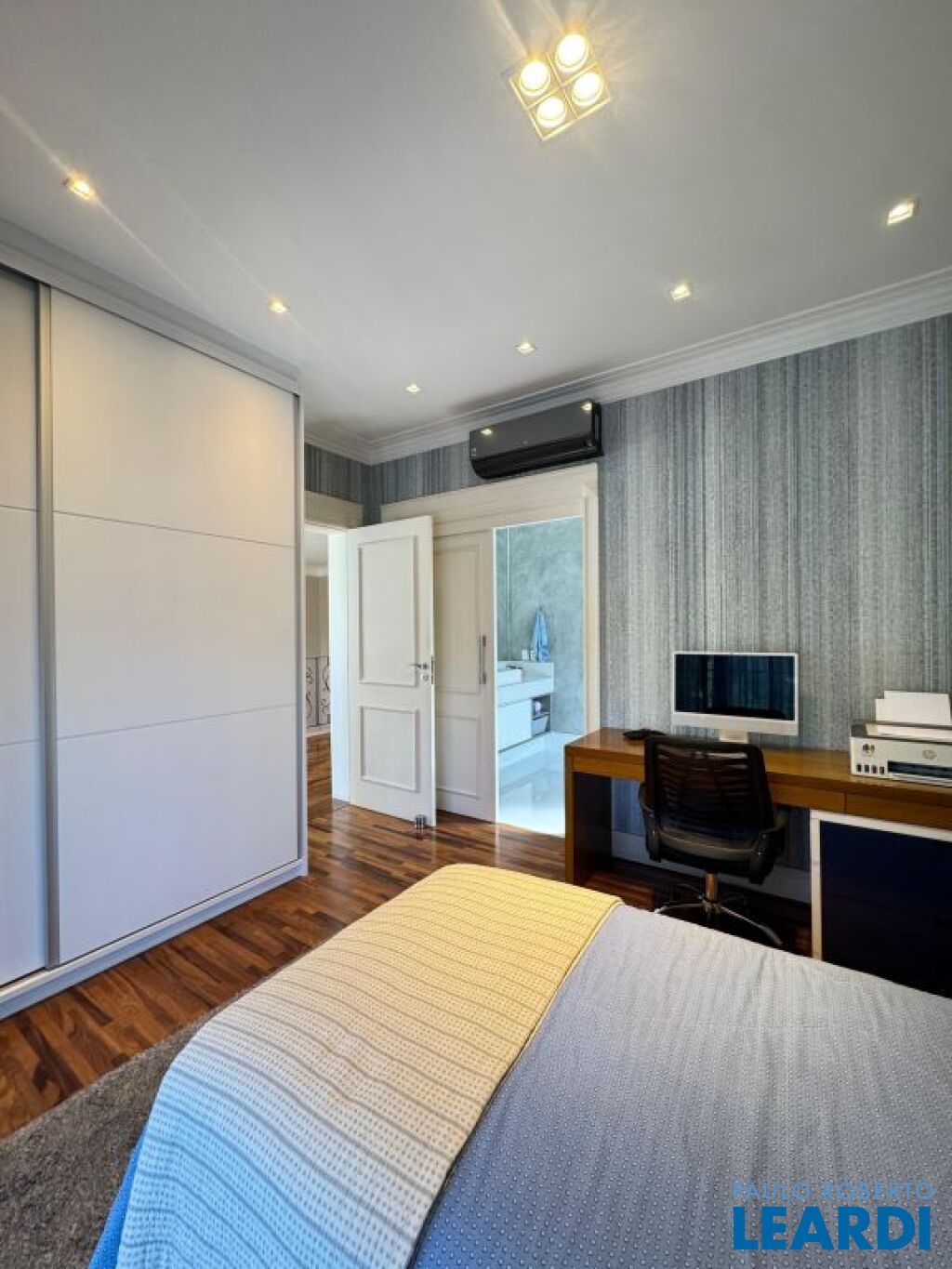 Localizada no coração de Alphaville, dentro do condomínio Villa Solaia, esta residência em estilo neo-clássico se destaca pela elegância e pela funcionalidade dos seus ambientes. Próxima à portaria, conta com um diferencial raro: garagem fechada e privativa para até 6 carros. O pavimento superior abriga 3 suítes e um home office, com destaque para a suíte master, que dispõe de um closet amplo e bem planejado. No térreo, o living com pé-direito duplo integra-se harmoniosamente a dois ambientes de lareira, sala de jantar para 8 pessoas, lavabo e escritório totalmente equipado com marcenaria da ID Móveis. A cozinha, ampla e funcional, conecta-se à lavanderia e à suíte de funcionários, e se integra de forma charmosa à área gourmet. O espaço de lazer conta com forno de pizza, churrasqueira e uma área de piscina ensolarada, perfeita para momentos de convivência. Com documentação 100% em ordem, esta casa é uma excelente oportunidade para quem busca conforto, estilo e praticidade em um dos condomínios mais valorizados de Alphaville.