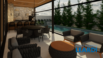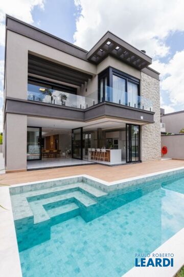 Térrea com projeto moderno e conceitos de acessibilidade (pode ser utilizada por idosos e cadeirante), com fino acabamento, suítes amplas, principal com closet e chuveiro duplo, salas integradas com pé direito duplo, cozinha com ilha, lavabo, escritório, despensa, lavanderia, empregada, espaço gourmet integrado com a cozinha e salas, piscina com prainha e iluminação de led com vista para mata, solário com 120 m2 com vista para mata (pode fazer academia, etc), 4 garagens cobertas + 2 descobertas. Ar Condicionado Split com infra instalada em todas suítes e salas.