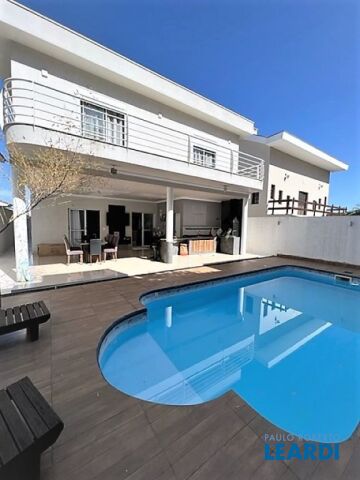 Casa com: Garagem privativa para 4 carros (sendo 3 vagas internas com portão automático e 1 vaga externa). Sala de visita com lareira; 03 amplas suites, (sendo uma um estúdio dentro da própria casa) 01 lavabo; 01 sala de jantar com cozinha aberta; 01 escritório gde; 01 Sala de tv/Cinema; 01 banheiro social; 01 banheiros serviço; 01 Quarto de apoio; 2º Andar 3 grandes suítes todas com closet sendo uma master e (uma com mezanino). Garagem para 3 carros e oficina; LAZER 01 Piscina de 24.000 lts aquecida com trocador de Calor Elétrico; 01 Academia; Área para descanso c/ rede; Área gourmet; Sauna úmida para 6 pessoas INFRAESTRUTURA 20 placas solares Aquecimento do boiler solar com capacidade de 600 lts. Caixa de água com 8.000 lts Portão automático Casa rica em armários. Ligue e Agende uma Visita!