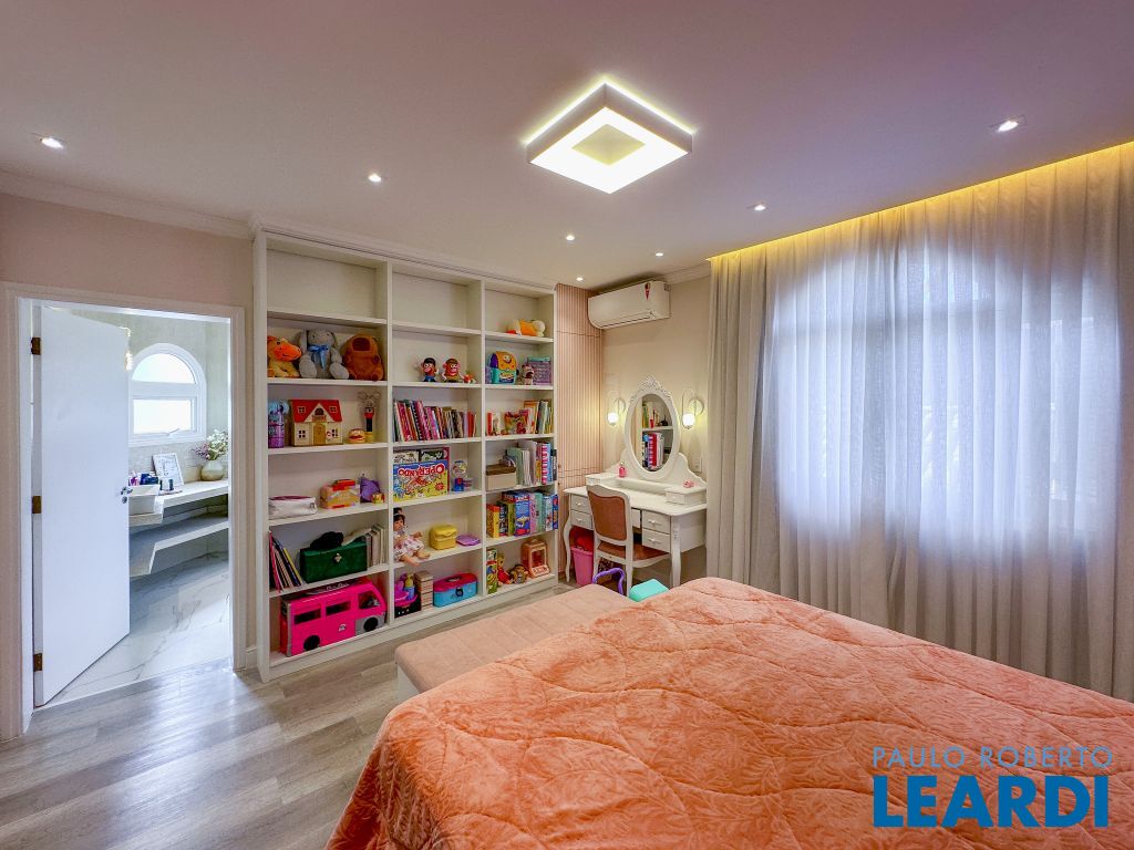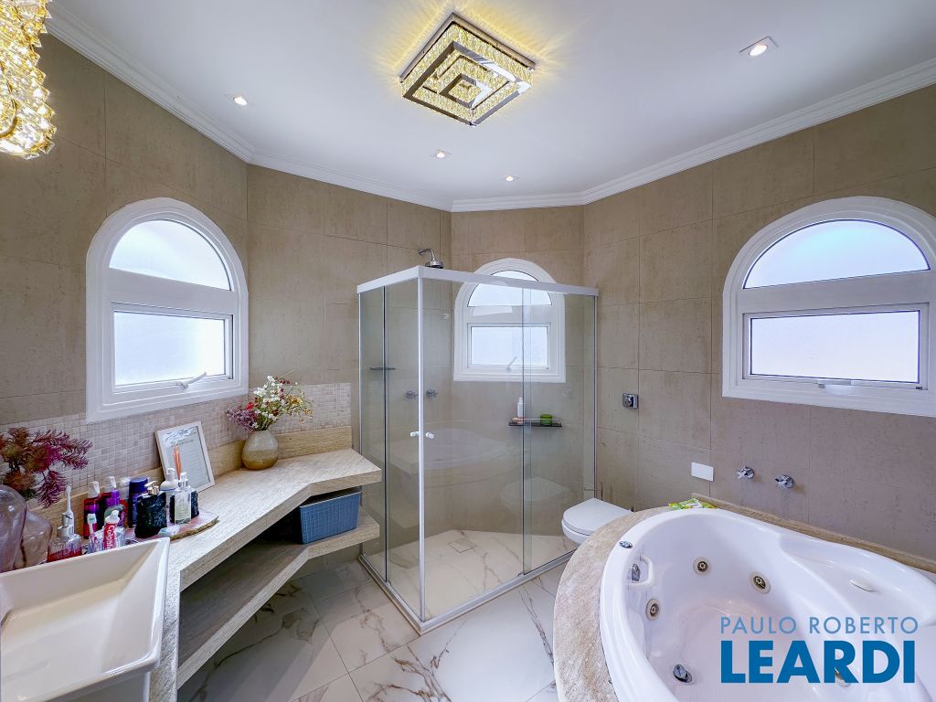 Luxuosa casa composta de 4 espaçosas e confortaveis suites em condomínio aconchegante condomínio.. O Condomínio 18 do Forte é um residencial de luxo, com arquitetura moderna inspirada em cidades como Dubai e Nova York, localizado em Santana de Parnaíba/Barueri. Ele oferece casas amplas, com 4 a 6 suítes, varanda gourmet com churrasqueira, piscina, e até mesmo lareira e closet na suíte master em alguns imóveis. A infraestrutura de lazer é completa, incluindo academia, quadra esportiva, salão de festas e de jogos, piscina aquecida, playground e espaço gourmet.