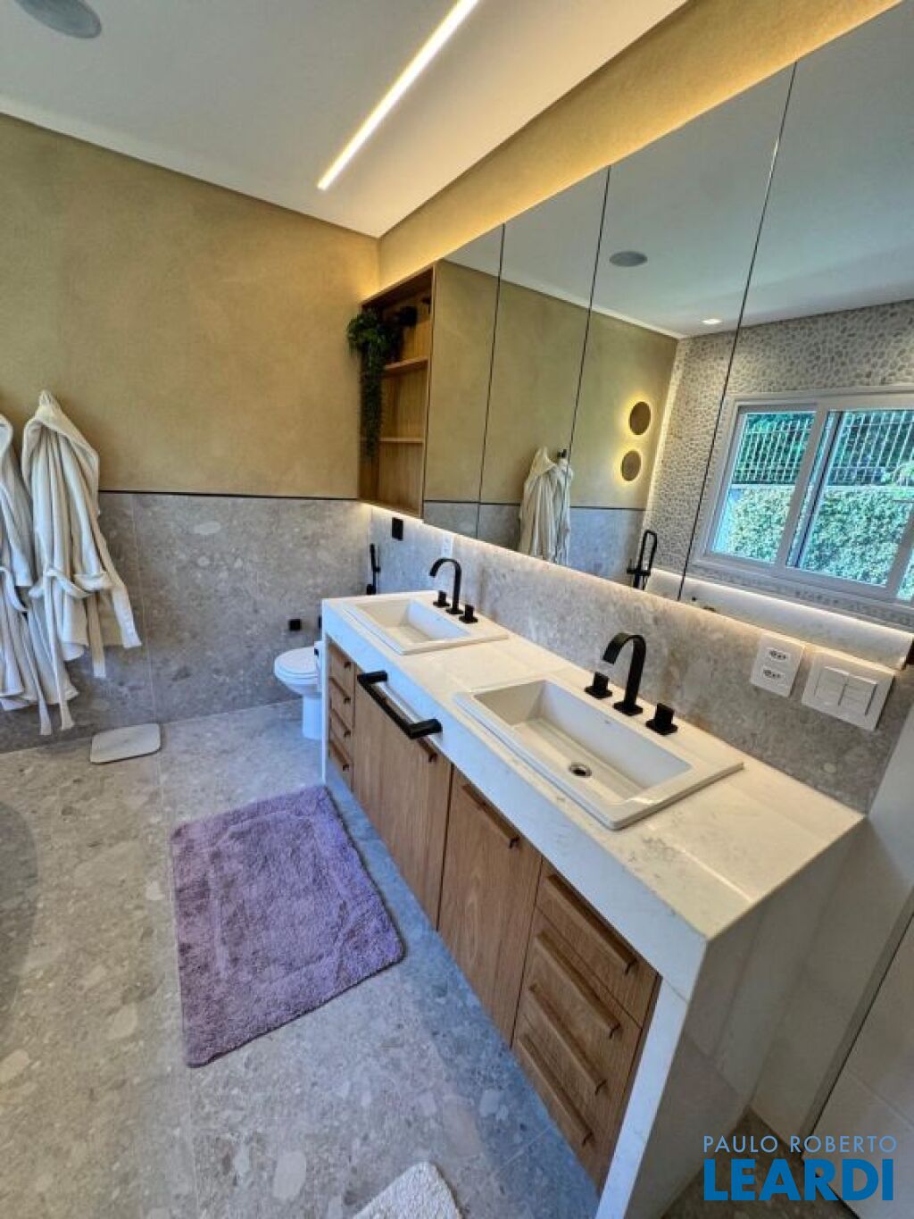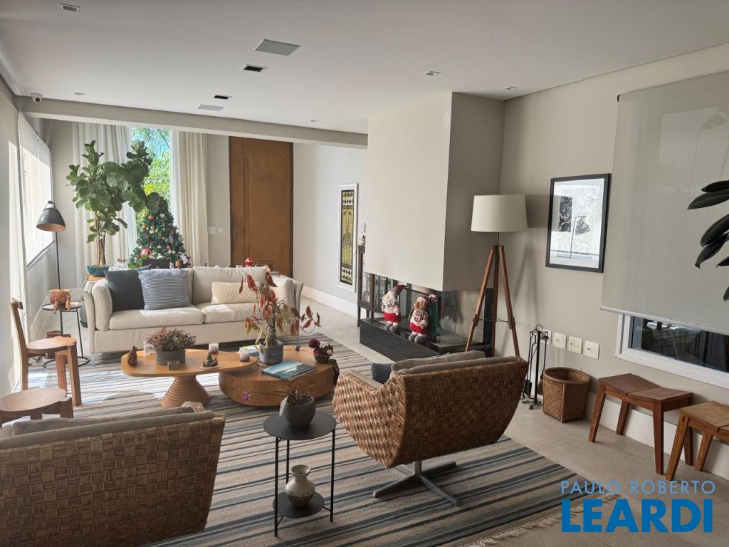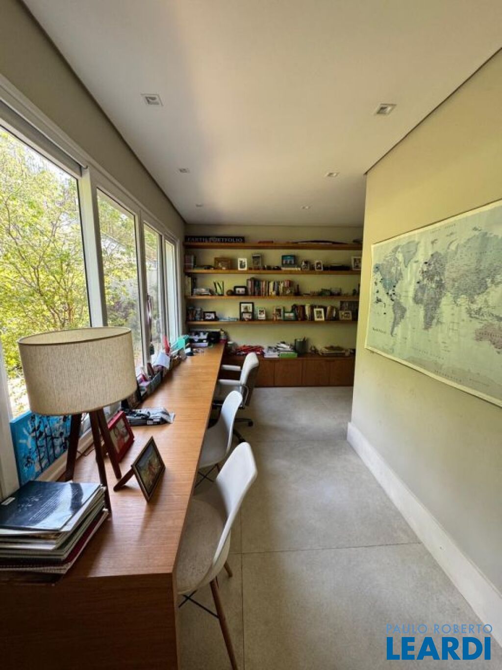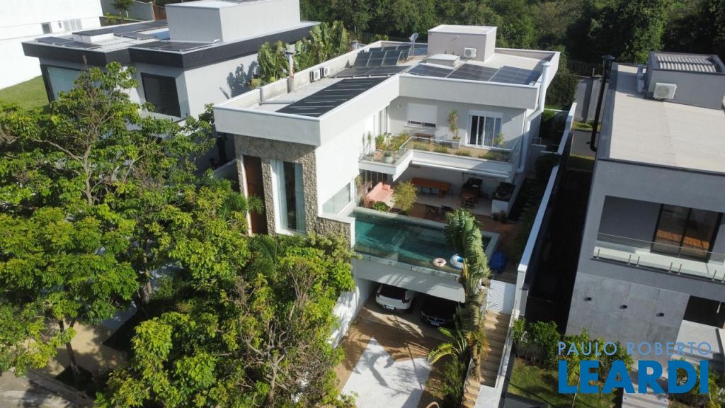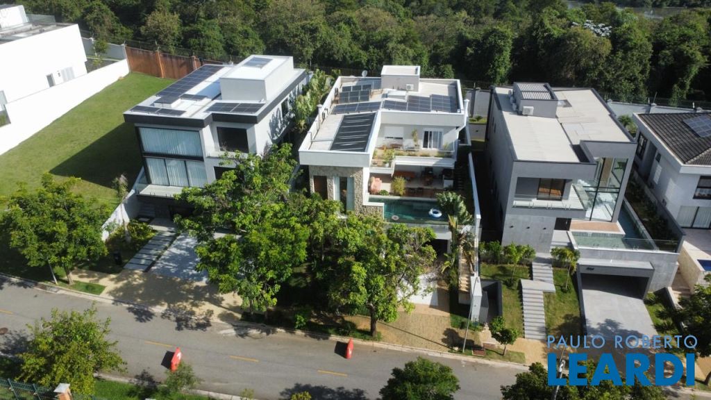Localizada na Alameda Rembrandt, 721, esta propriedade de 369,75 m² (terreno de 480 m²) destaca-se imediatamente na rua pela sua presença imponente e paisagismo maduro. Projeto de arquitetura de Luita Trench. * Presença Verde: A frente da casa é emoldurada por árvores de grande porte, entre as maiores de toda a alameda, garantindo sombra, frescor e uma estética única. * Piscina 18,40 m², revestida em Pedra Hijau (Palimanan) e com borda infinita e vista permanente. * Pôr do sol exclusivo: vista deslumbrante e totalmente livre para a floresta. A posição da casa garante o horizonte do pôr do sol de forma permanente, sem risco de novas construções obstruírem a visão ou a privacidade. ⚡ Independência Energética (Economia Mensal de até R$ 1.000) * Geração Fotovoltaica: 16 placas que zeram o consumo da casa e ainda abastecem um carregador veicular na garagem para carros elétricos. * Aquecimento Solar: Sistemas independentes para a rede hidráulica e para o aquecimento da piscina. 🛌 Suíte Master Spa (Upgrade Dez/2025) * Reforma Premium: Banheira de imersão Victoria + Albert (Doka), seixo selado Palimanan, revestimento piso Portobello, metais e aquecedor de toalhas Deca e som embutido. Todos os outros metais da casa também são Deca. * Tecnologia Alemã: Janelas e portas VEKA (melhor esquadria do mercado, isolamento acústico absoluto) e persianas Hunter Douglas em toda casa. * Privacidade: Escritório privativo integrado exclusivamente à suíte, com persiana Hunter Douglas de madeira automatizada. 🛋️ Social, Som e Mobiliário * Living Sofisticado: Piso em revestimento italiano importado (1,20m x 1,20m) com lareira e jantar. * Imersão Sonora: Som embutido (living, jantar e piscina) com Receiver Denon de última geração. * Home Office Duplo: Segundo escritório para 3 pessoas adjacente à sala de TV. * Porteira Fechada: Casa plenamente mobiliada com muito requinte. Marcenaria de excelente qualidade, feita com marcenaria renoma