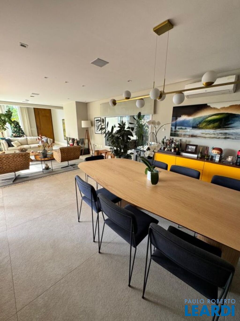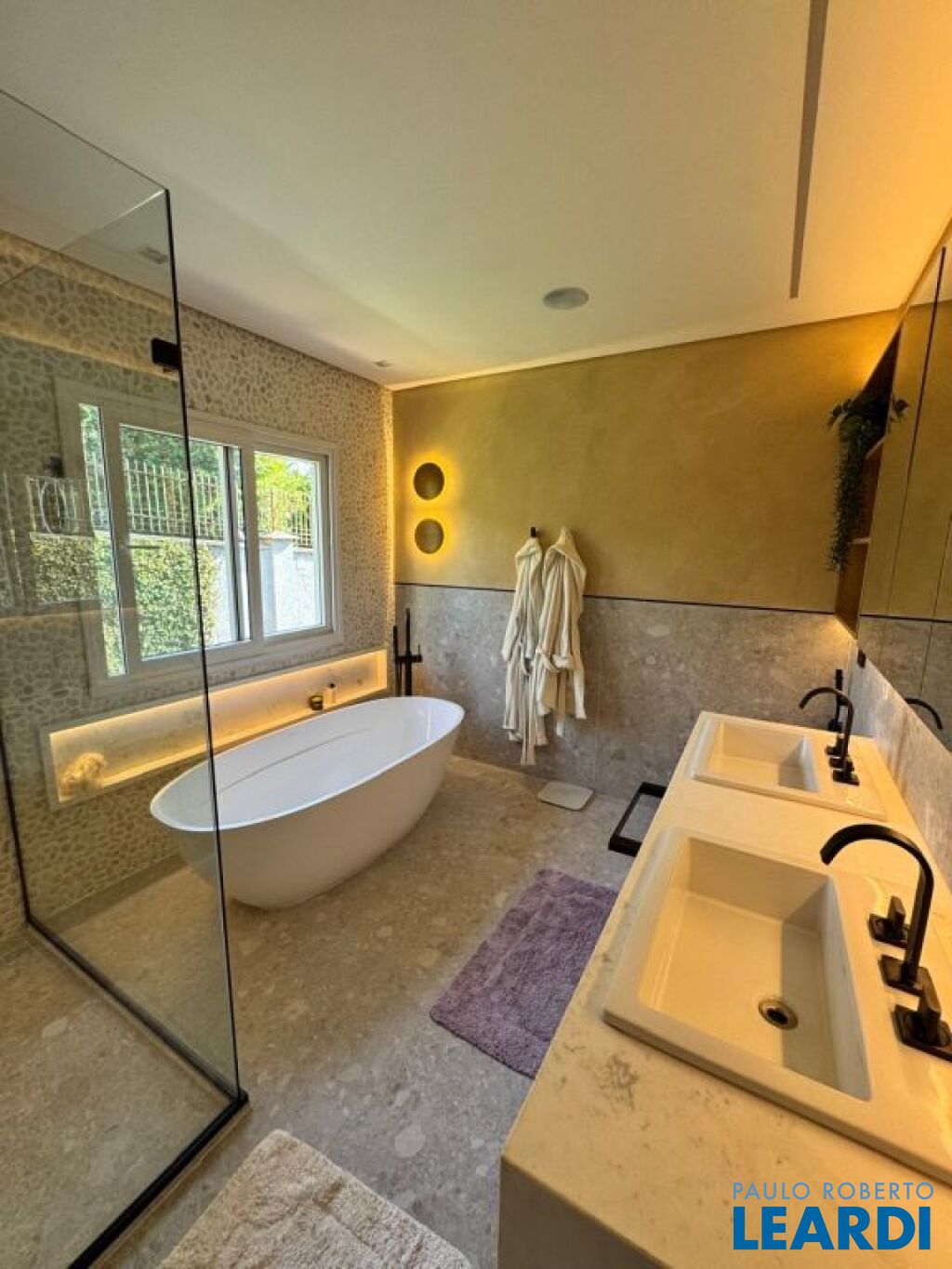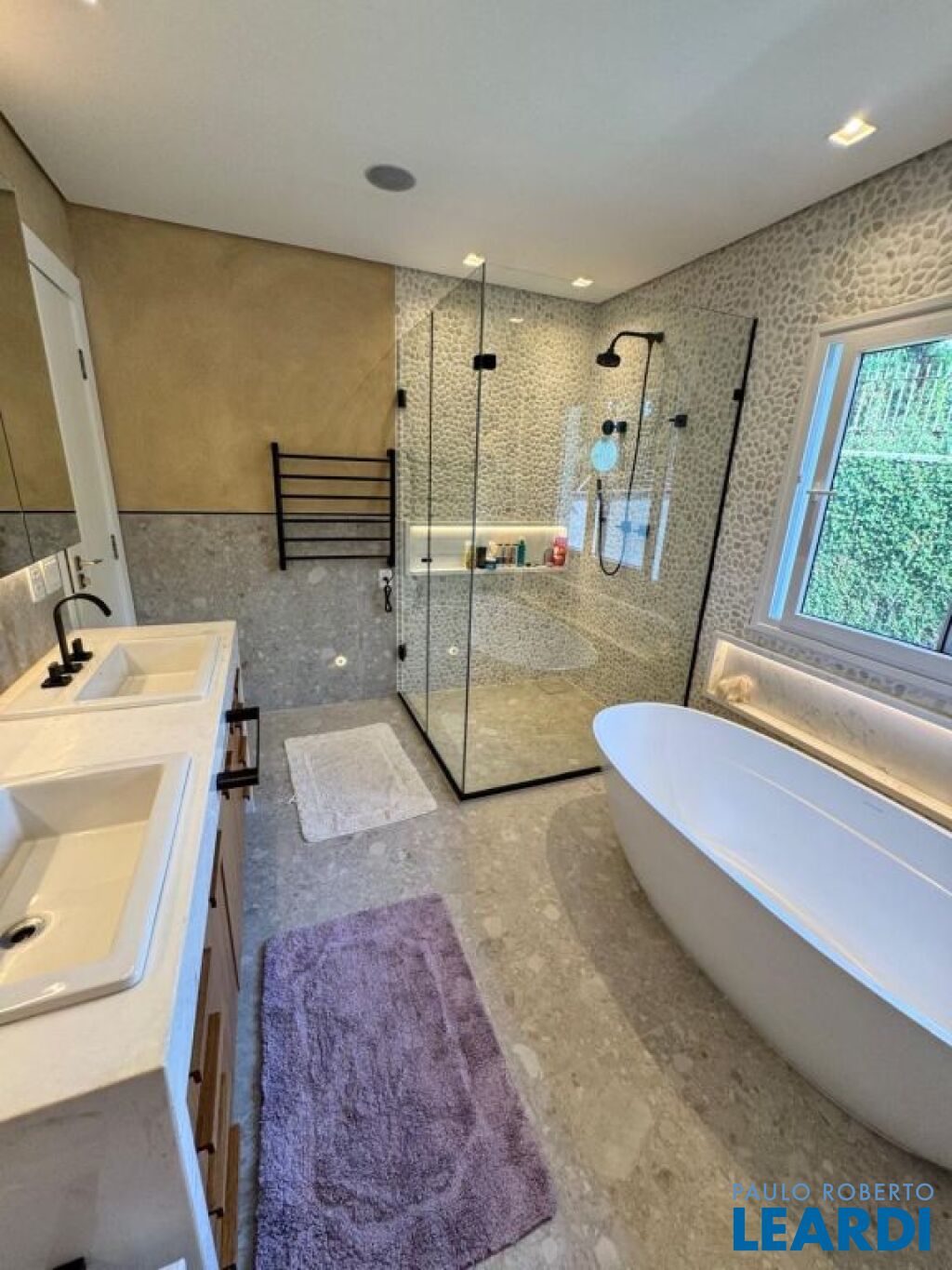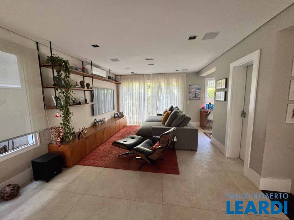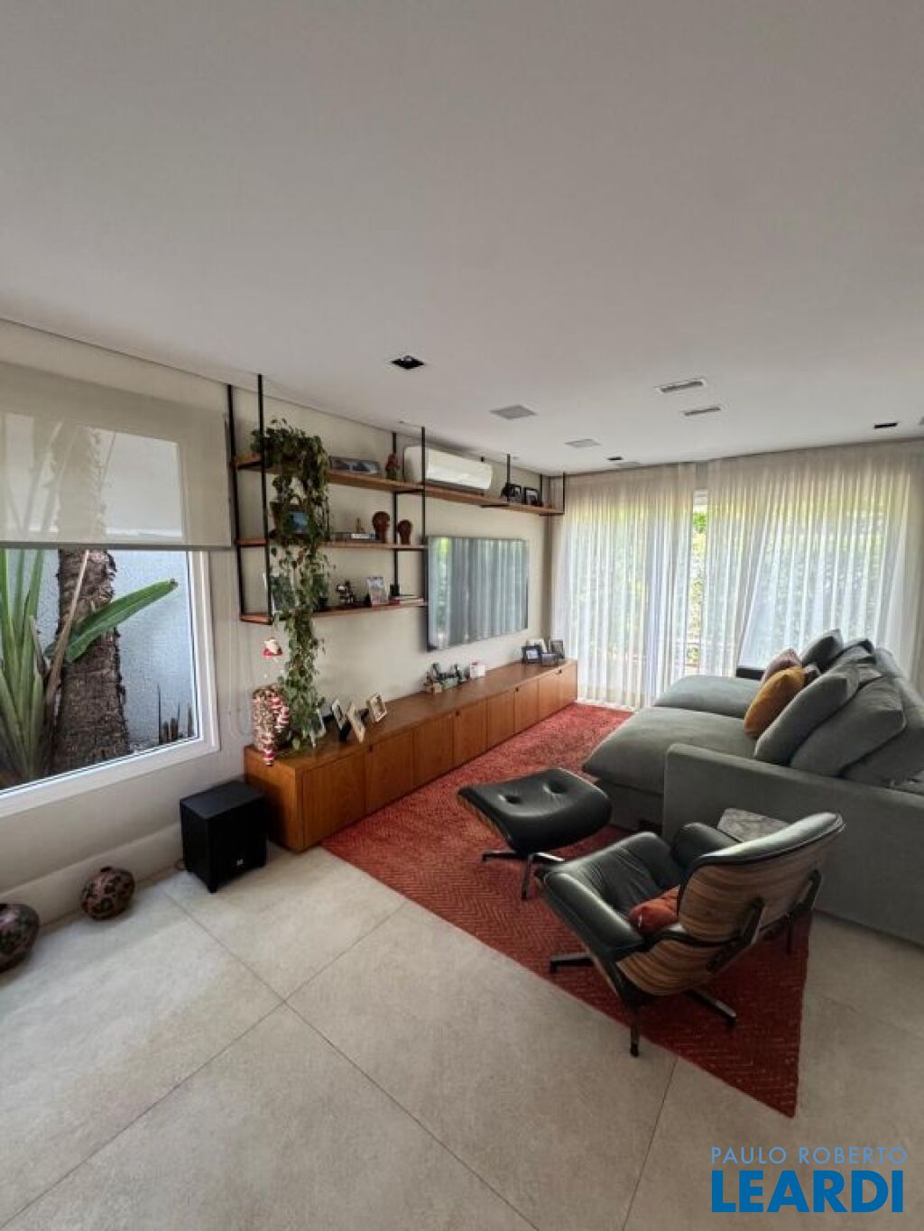 Localizada na Alameda Rembrandt, 721, esta propriedade de 369,75 m² (terreno de 480 m²) destaca-se imediatamente na rua pela sua presença imponente e paisagismo maduro. Projeto de arquitetura de Luita Trench. * Presença Verde: A frente da casa é emoldurada por árvores de grande porte, entre as maiores de toda a alameda, garantindo sombra, frescor e uma estética única. * Piscina 18,40 m², revestida em Pedra Hijau (Palimanan) e com borda infinita e vista permanente. * Pôr do sol exclusivo: vista deslumbrante e totalmente livre para a floresta. A posição da casa garante o horizonte do pôr do sol de forma permanente, sem risco de novas construções obstruírem a visão ou a privacidade. ⚡ Independência Energética (Economia Mensal de até R$ 1.000) * Geração Fotovoltaica: 16 placas que zeram o consumo da casa e ainda abastecem um carregador veicular na garagem para carros elétricos. * Aquecimento Solar: Sistemas independentes para a rede hidráulica e para o aquecimento da piscina. 🛌 Suíte Master Spa (Upgrade Dez/2025) * Reforma Premium: Banheira de imersão Victoria + Albert (Doka), seixo selado Palimanan, revestimento piso Portobello, metais e aquecedor de toalhas Deca e som embutido. Todos os outros metais da casa também são Deca. * Tecnologia Alemã: Janelas e portas VEKA (melhor esquadria do mercado, isolamento acústico absoluto) e persianas Hunter Douglas em toda casa. * Privacidade: Escritório privativo integrado exclusivamente à suíte, com persiana Hunter Douglas de madeira automatizada. 🛋️ Social, Som e Mobiliário * Living Sofisticado: Piso em revestimento italiano importado (1,20m x 1,20m) com lareira e jantar. * Imersão Sonora: Som embutido (living, jantar e piscina) com Receiver Denon de última geração. * Home Office Duplo: Segundo escritório para 3 pessoas adjacente à sala de TV. * Porteira Fechada: Casa plenamente mobiliada com muito requinte. Marcenaria de excelente qualidade, feita com marcenaria renoma