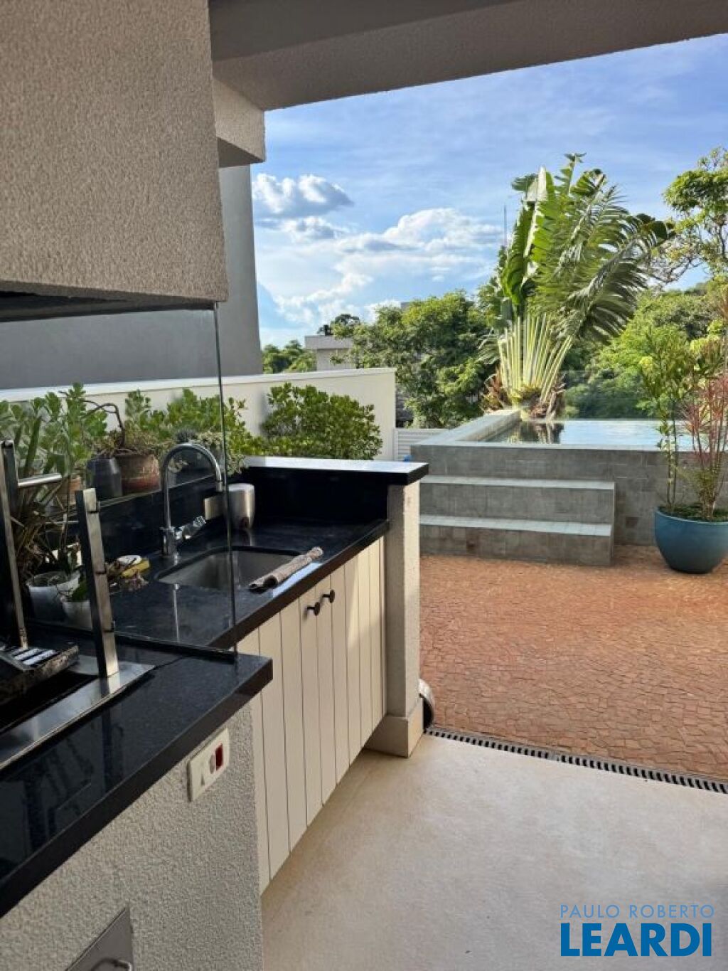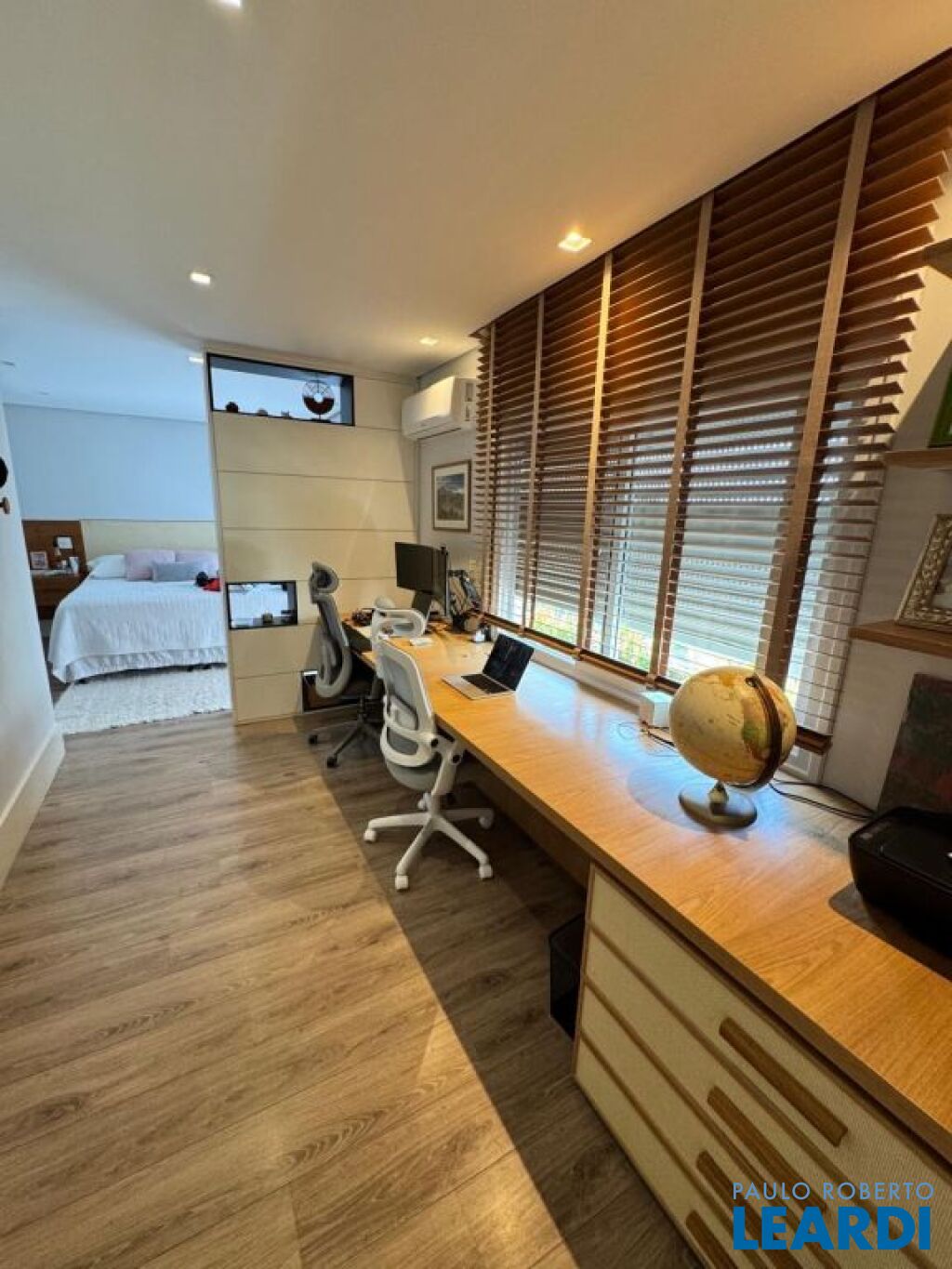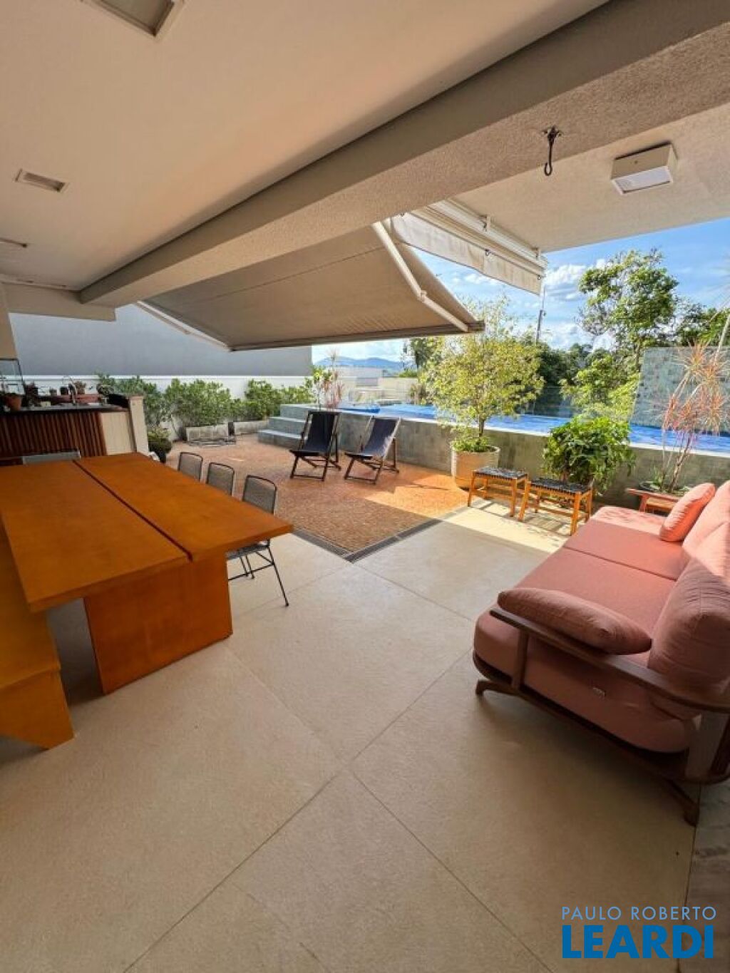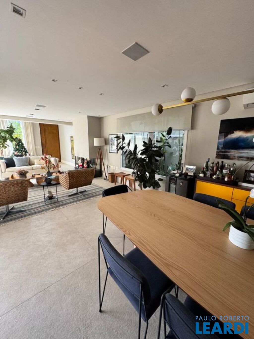 Localizada na Alameda Rembrandt, 721, esta propriedade de 369,75 m² (terreno de 480 m²) destaca-se imediatamente na rua pela sua presença imponente e paisagismo maduro. Projeto de arquitetura de Luita Trench. * Presença Verde: A frente da casa é emoldurada por árvores de grande porte, entre as maiores de toda a alameda, garantindo sombra, frescor e uma estética única. * Piscina 18,40 m², revestida em Pedra Hijau (Palimanan) e com borda infinita e vista permanente. * Pôr do sol exclusivo: vista deslumbrante e totalmente livre para a floresta. A posição da casa garante o horizonte do pôr do sol de forma permanente, sem risco de novas construções obstruírem a visão ou a privacidade. ⚡ Independência Energética (Economia Mensal de até R$ 1.000) * Geração Fotovoltaica: 16 placas que zeram o consumo da casa e ainda abastecem um carregador veicular na garagem para carros elétricos. * Aquecimento Solar: Sistemas independentes para a rede hidráulica e para o aquecimento da piscina. 🛌 Suíte Master Spa (Upgrade Dez/2025) * Reforma Premium: Banheira de imersão Victoria + Albert (Doka), seixo selado Palimanan, revestimento piso Portobello, metais e aquecedor de toalhas Deca e som embutido. Todos os outros metais da casa também são Deca. * Tecnologia Alemã: Janelas e portas VEKA (melhor esquadria do mercado, isolamento acústico absoluto) e persianas Hunter Douglas em toda casa. * Privacidade: Escritório privativo integrado exclusivamente à suíte, com persiana Hunter Douglas de madeira automatizada. 🛋️ Social, Som e Mobiliário * Living Sofisticado: Piso em revestimento italiano importado (1,20m x 1,20m) com lareira e jantar. * Imersão Sonora: Som embutido (living, jantar e piscina) com Receiver Denon de última geração. * Home Office Duplo: Segundo escritório para 3 pessoas adjacente à sala de TV. * Porteira Fechada: Casa plenamente mobiliada com muito requinte. Marcenaria de excelente qualidade, feita com marcenaria renoma