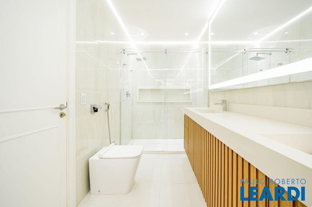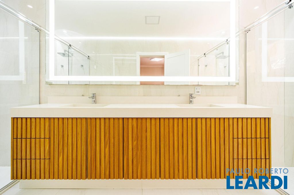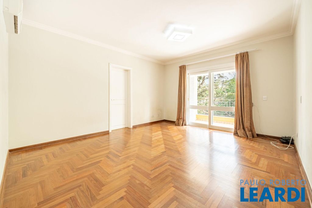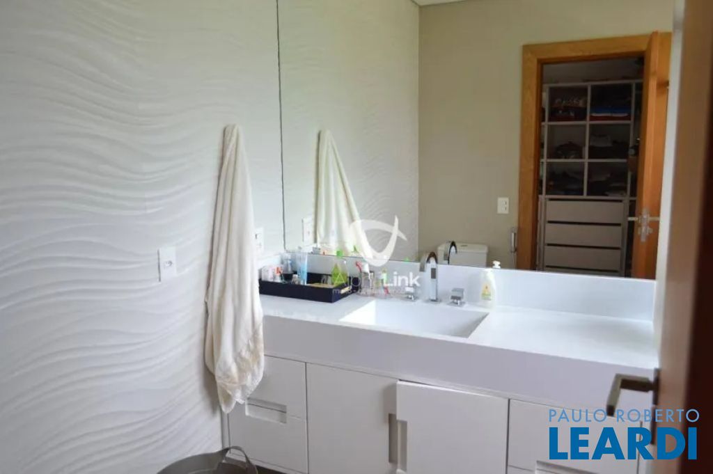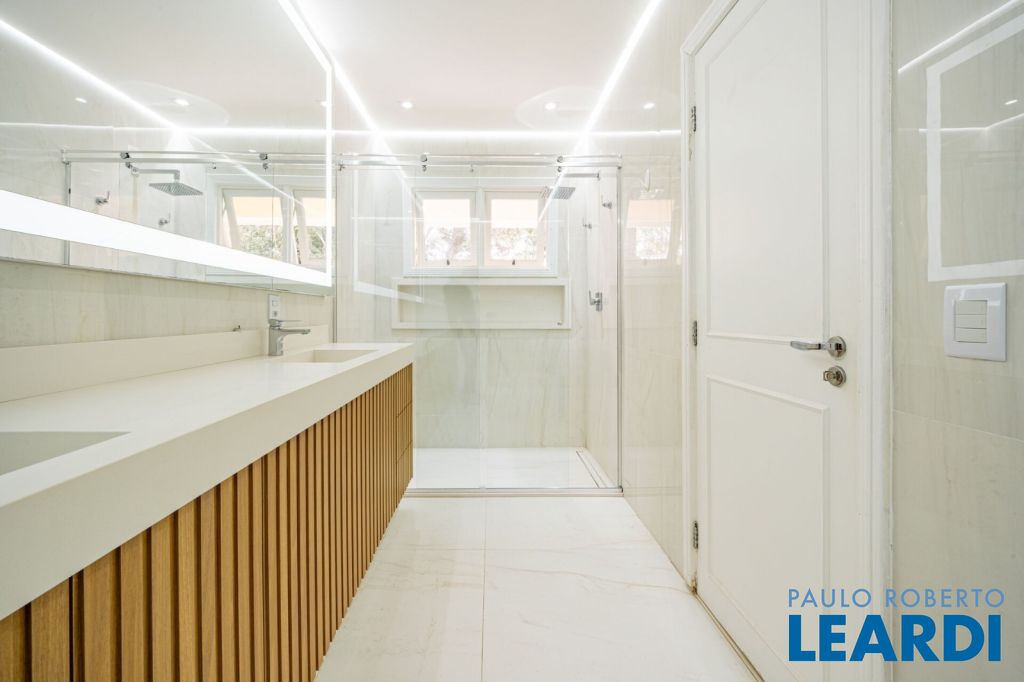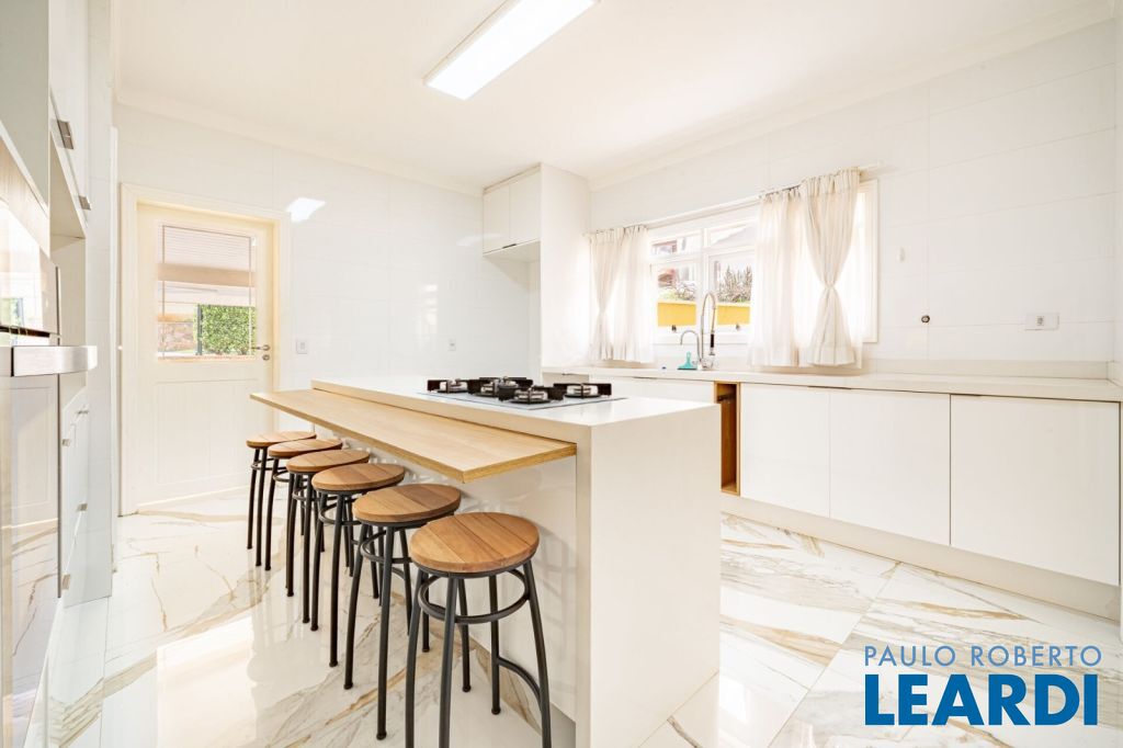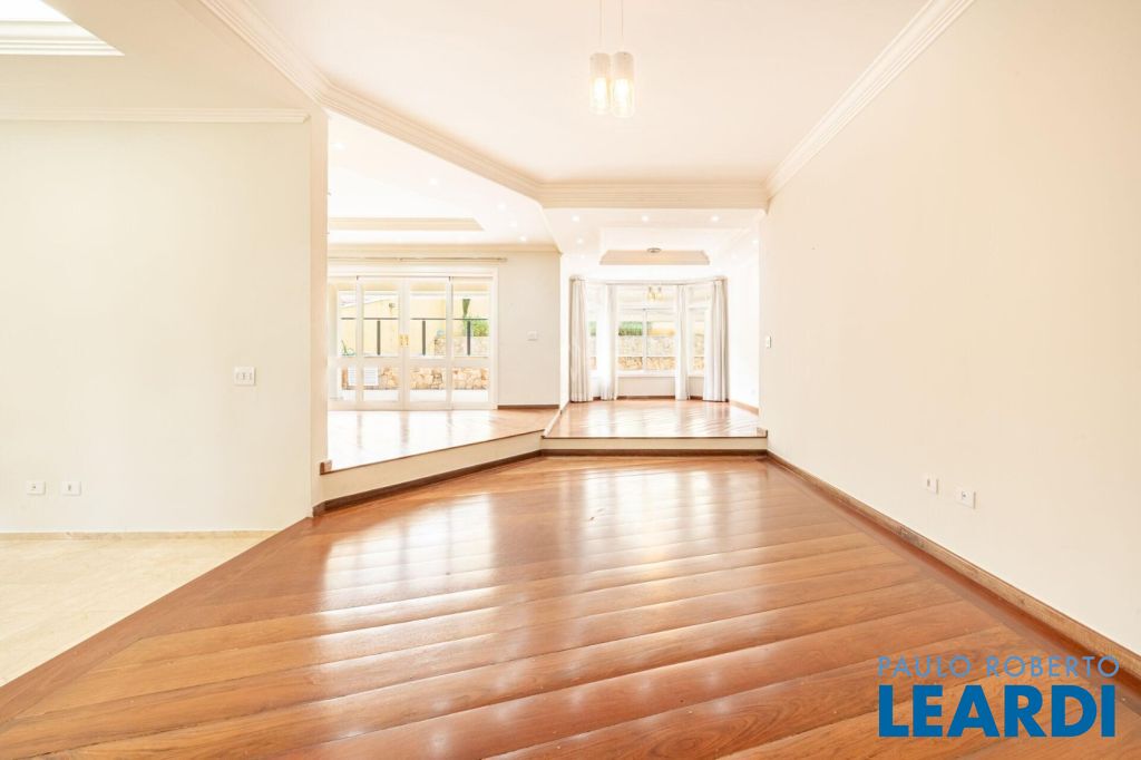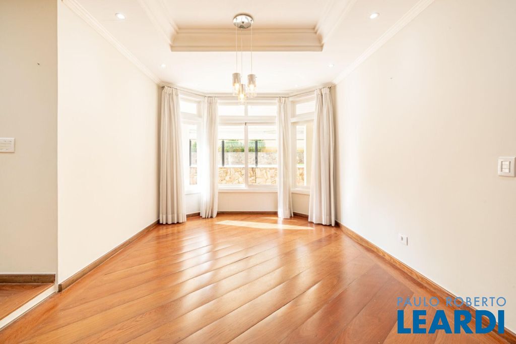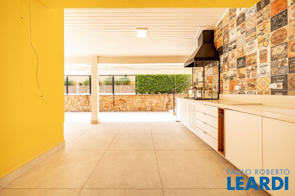 master com closet e varanda, living para 3 ambientes, sala de estar, sala de jantar, sala de TV, lareira, escritório, cozinha, copa, lavabo, área de serviço, dependência de funcionário, espaço gourmet, piscina, deck molhado, churrasqueira, 2 vagas cobertas na garagem, área de terreno 608 m², área construída 470 m².