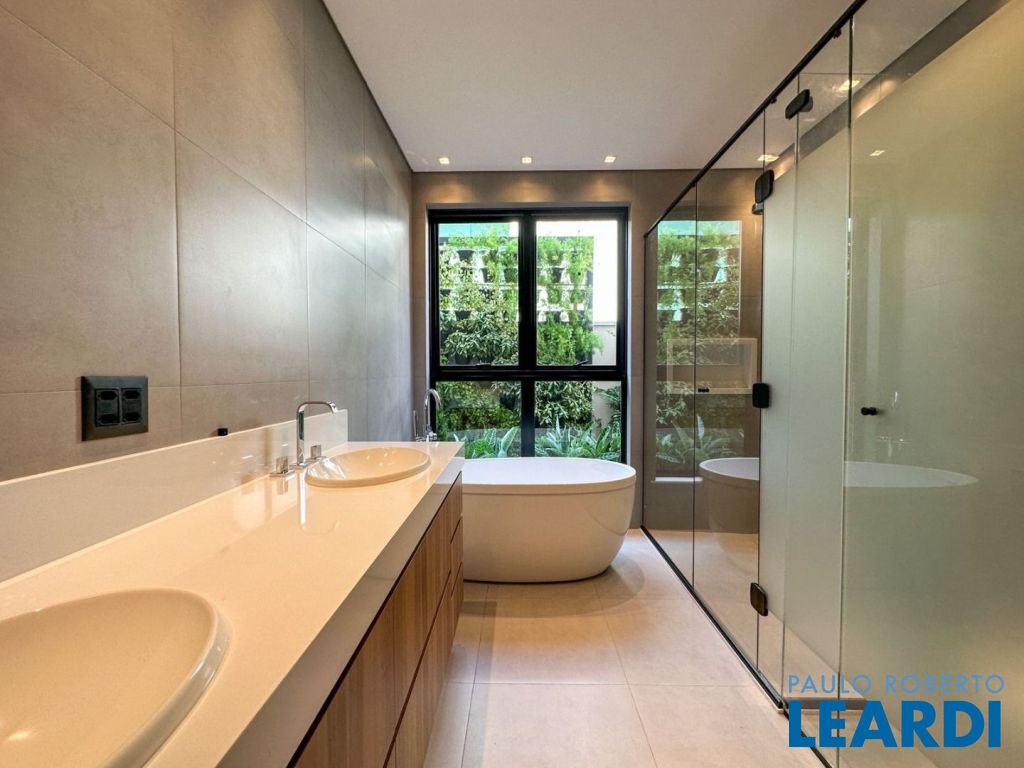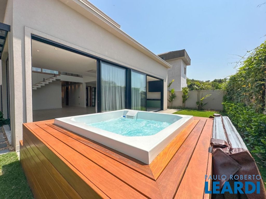 4 suítes, sendo a máster no piso térreo com closet e hidromassagem, pé direito duplo, sala de estar, lareira, sala de jantar, ar condicionado em todos os ambientes, cozinha integrada à área gourmet, despensa, lavabo, área de serviço, espaço gourmet, jacuzzi, adega climatizada, energia fotovoltaica, aquecimento a gás, 2 vagas cobertas na garagem,