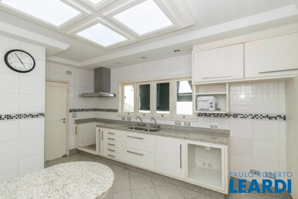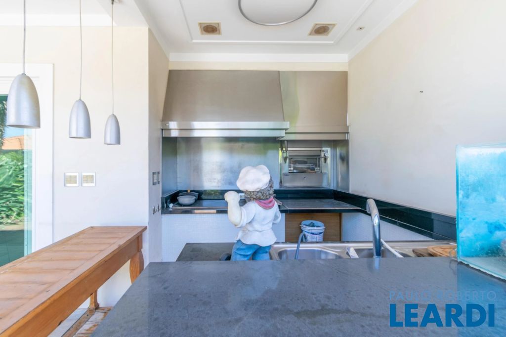 4 suítes,(a máster com closet e hidro, living , sala de estar, lareira, sala de jantar, sala de TV, sala íntima, escritório, cozinha em granito. completa de armários, copa de apoio, lavabo, área de serviço, dependência de funcionários, dependência de empregados, espaço gourmet, piscina, churrasqueira, roupeiro, salão de festas, espaço para atelier com terraço, aquecimento com troca de calor, placas solares, áreas comuns com piso em crema marfil área externa revestida com pedras naturais, piso de acesso a garagem em mosaico português, depósito, 2 vagas na garagem,