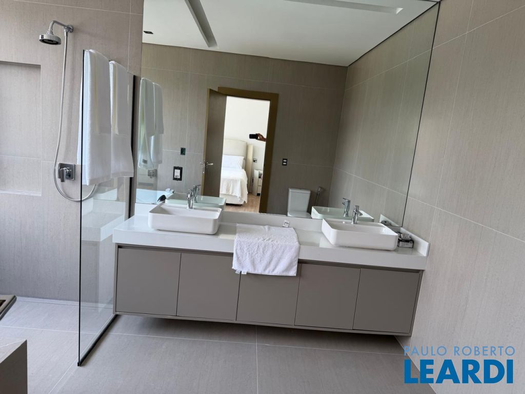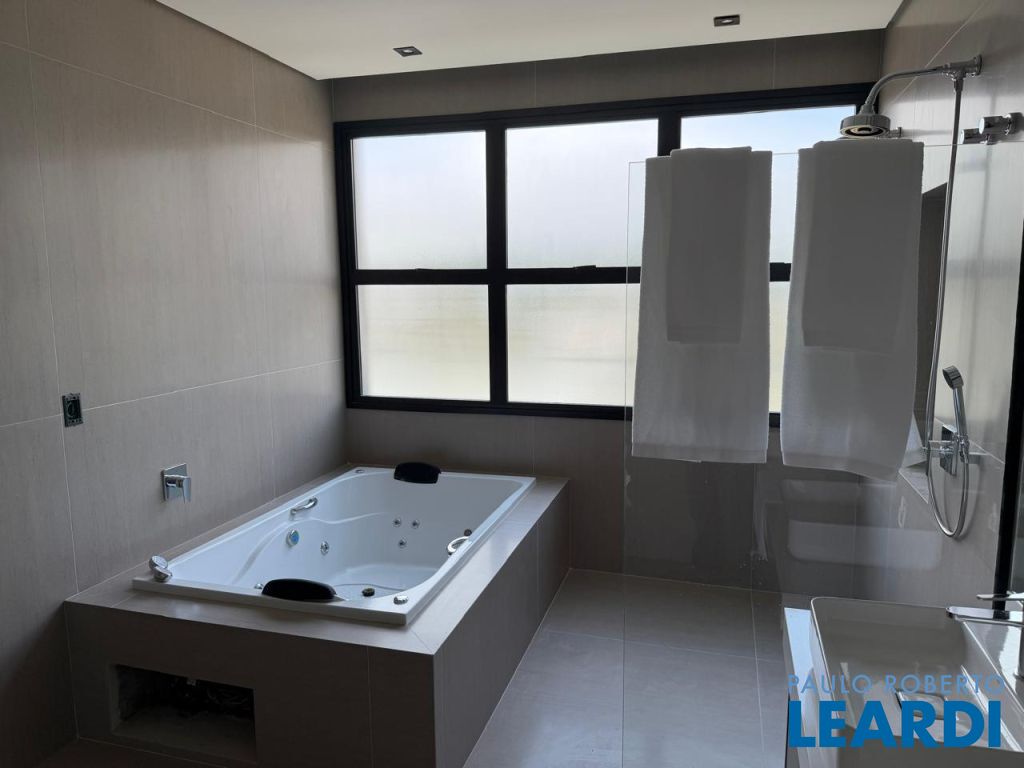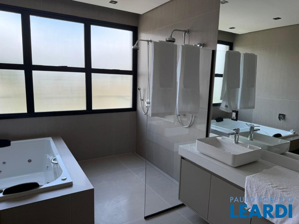 4 suítes, sendo 1 no térreo, suíte máster com closet e hidromassagem, living com pé direito duplo, sala de estar, lareira, sala de jantar, ar condicionado, cozinha, despensa, área de serviço, espaço gourmet, piscina, churrasqueira, adega, banheiro para piscina, sótão, água com boiler elétrico e pressurizador, acabamento em mármore, piso porcelanato, será entregue com móveis e decoração de alto padrão, projeto de arquitetura Leonice Alves, casa de máquina, depósito, 3 vagas cobertas na garagem,