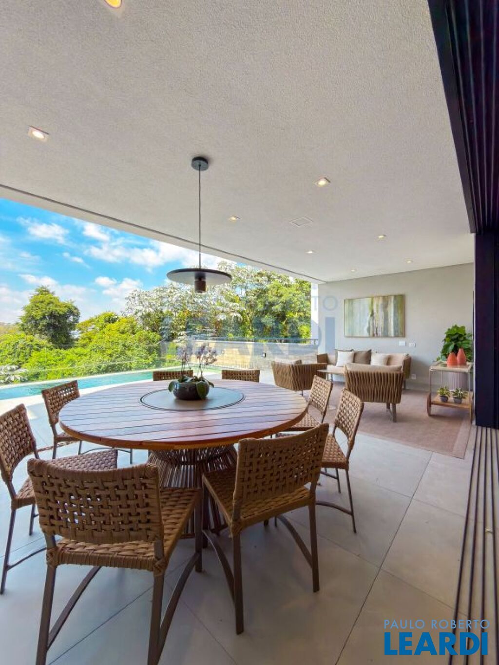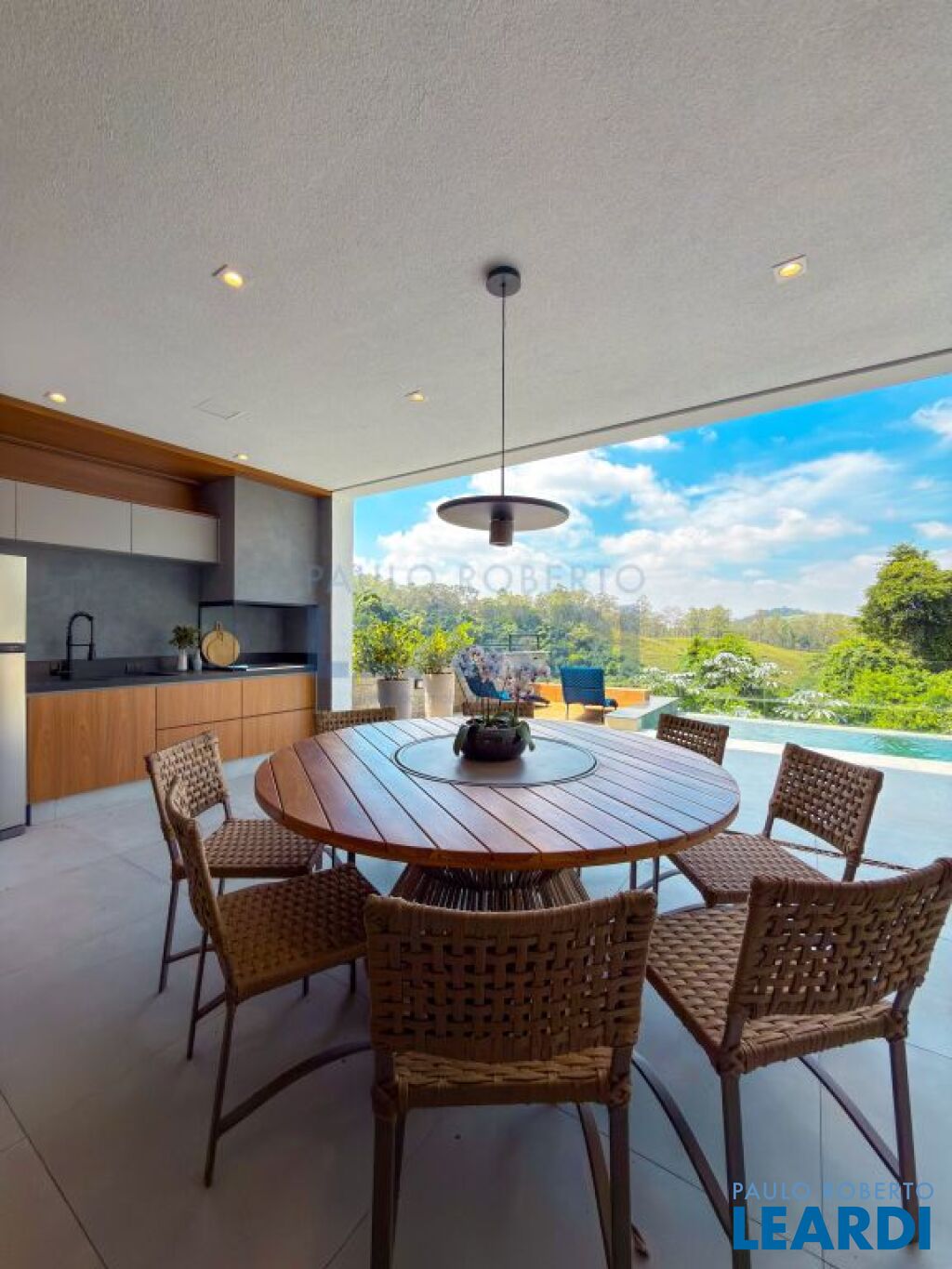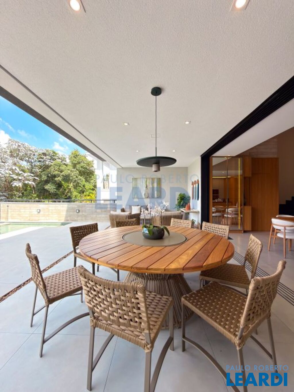 Imóvel esta completo, ar em todas as suítes, cozinha e gourmet completa com todos eletrodomésticos, área comum decorada projeto Arquitetônico - Mariana Esteves Decoração - Luana Navarro “O living traz sua imponência e aconchego através de peças assinadas por designers como Mauricio Bonfim, Ibanez Razzera, adquiridas na Wm Alphaville. A proposta da área externa traz textura e naturalidade abraçando a paisagem com peças artesanais feitas sob medida de corda náutica e madeira trazendo textura e naturalidade. A sala de TV é da Kaza Estilo. E a produção final que ilumina e da cor na casa, vasos, quadros, objetos — é da Vener Decor, em Alphaville. Além do projeto de paisagismo interno para trazer a beleza da natureza refletindo também dentro da casa.”