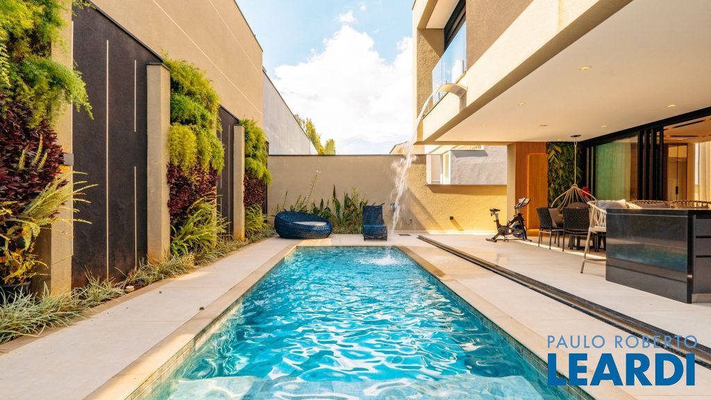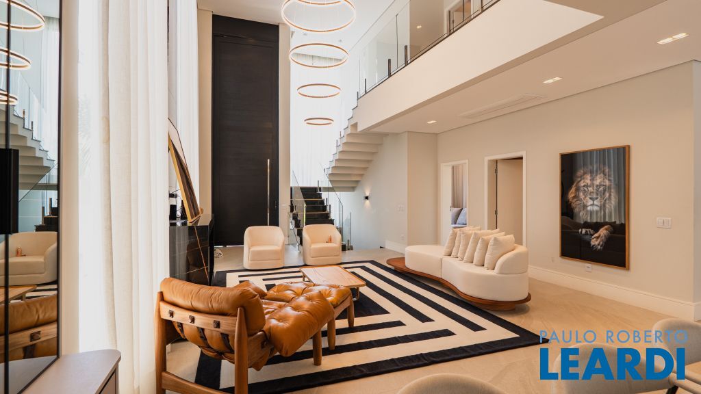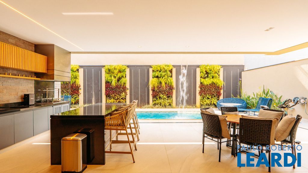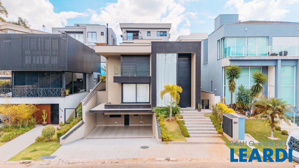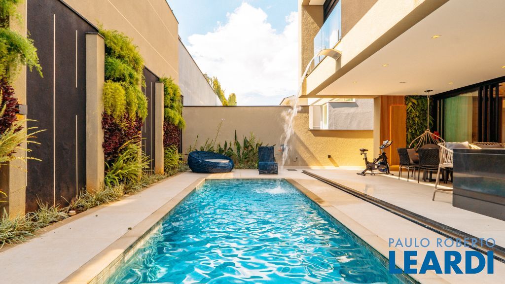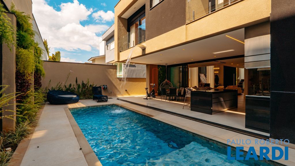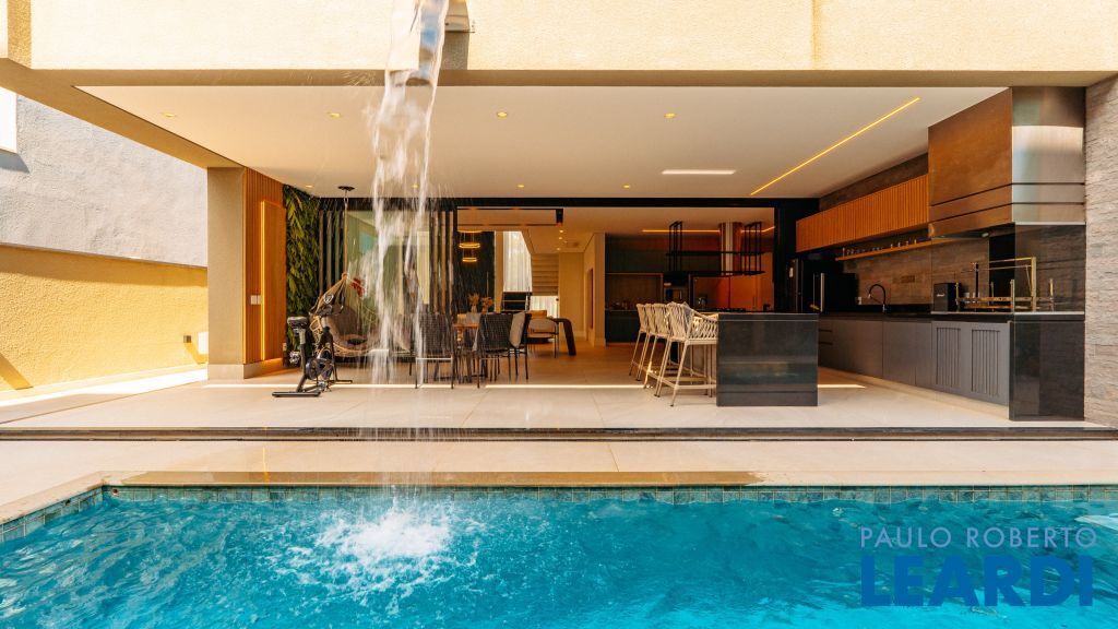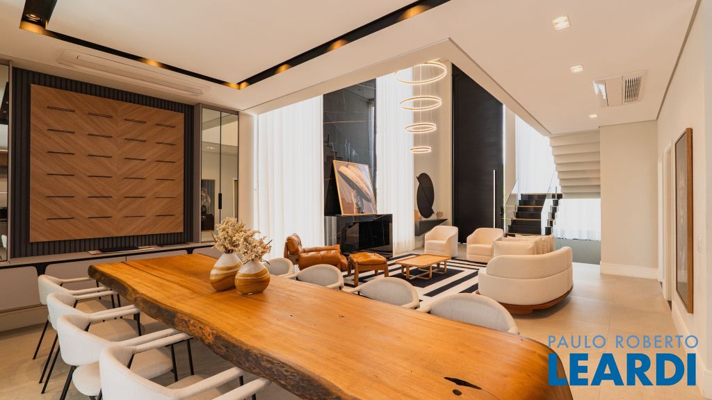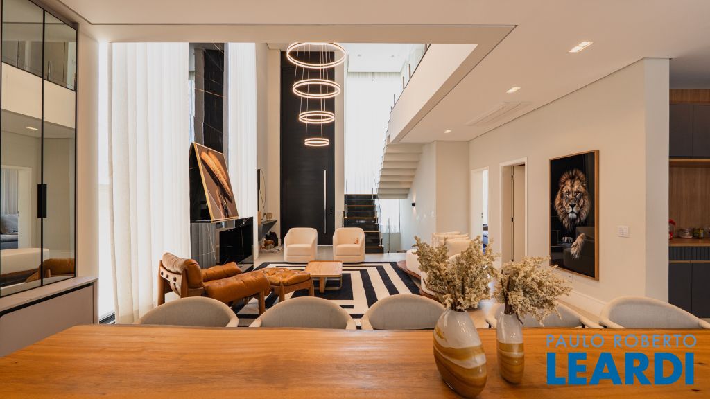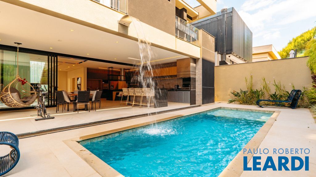 Com um projeto arquitetônico contemporâneo e funcional, esta casa mobiliada oferece conforto em cada detalhe. Logo na entrada, você é recebido por um living com pé-direito duplo, lareira charmosa e integração total com a cozinha e o espaço gourmet. No piso térreo, uma suíte completa atende perfeitamente visitas ou moradores com mobilidade reduzida. As 4 suítes possuem excelente metragem, piso em madeira e persianas automatizadas, garantindo conforto térmico e visual. A área externa conta com uma piscina privativa, varanda, terraço e paisagismo que valorizam ainda mais a experiência de morar aqui. Uma casa ideal para famílias que valorizam o bem-estar, o design e a exclusividade de viver em um dos residenciais mais desejados da região. Características do Imóvel: Banheiro Auxiliar Banheiro Social Churrasqueira Closet Construção Alvenaria Cozinha Dependência de Empregada Despensa Escritório Lareira Lavabo Living Living Hall Piscina Sacada Sala Sala Estar Sala Jantar Sala TV Suíte Master Terraço Varanda Características do Condomínio: Brinquedoteca Churrasqueira Condomínio Condomínio Fechado Espaço Gourmet Estacionamento para Visitantes Piscina Aquecida Piscina Coletiva Piscina Infantil Pista Caminhada Playground Portaria Portaria 24h Quadra Esportes Quadra Poliesportiva Quadra Tênis Quadra de Futevôlei / Beach Tênis Quiosque Sala Fitness Salão de Jogos Sauna
