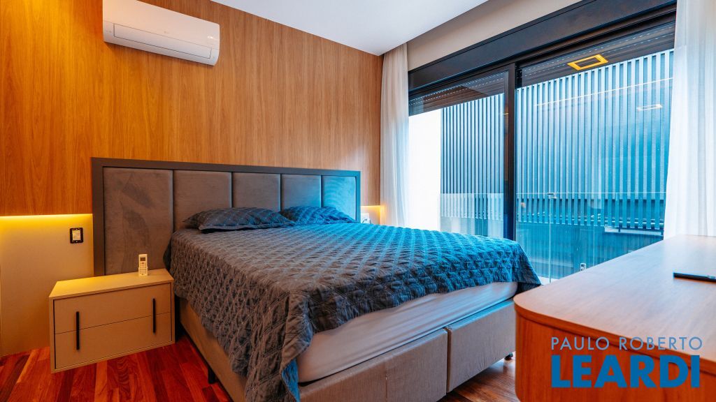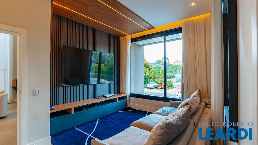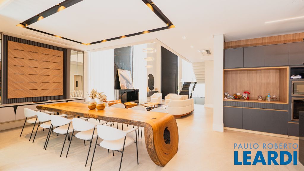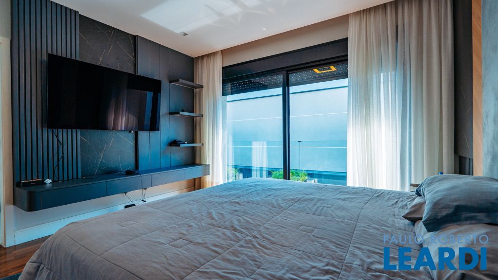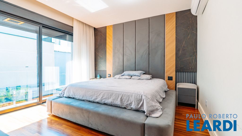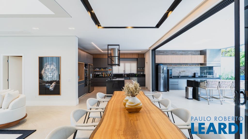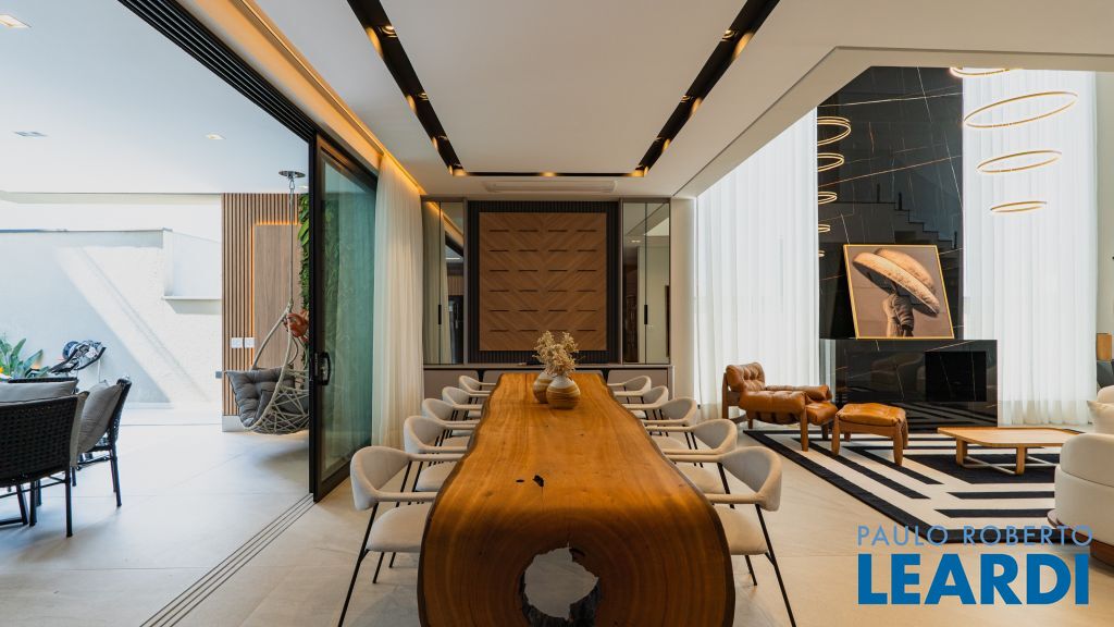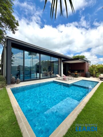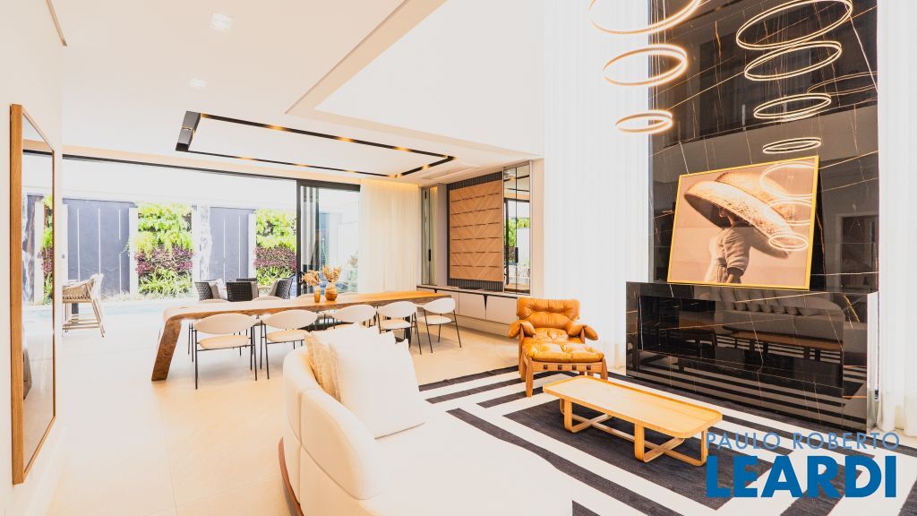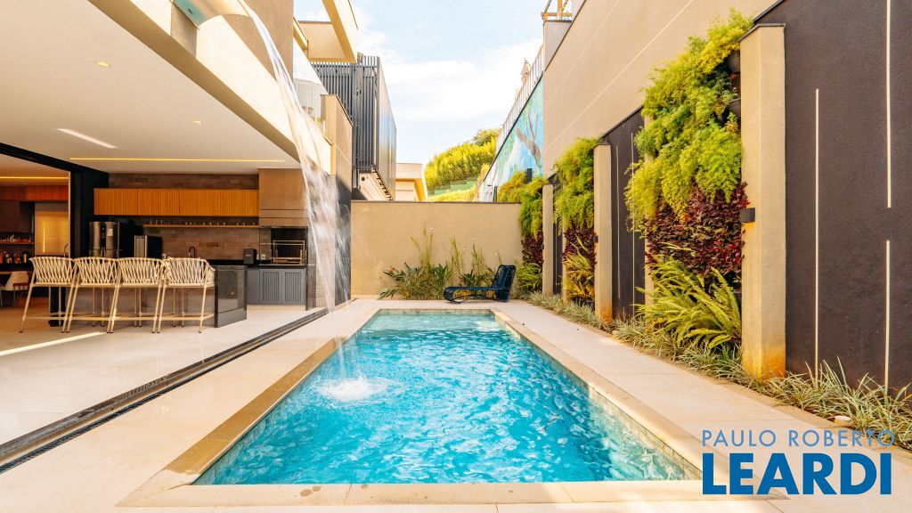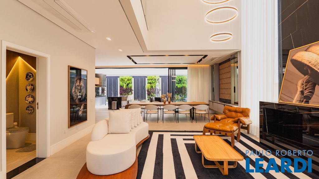 Com um projeto arquitetônico contemporâneo e funcional, esta casa mobiliada oferece conforto em cada detalhe. Logo na entrada, você é recebido por um living com pé-direito duplo, lareira charmosa e integração total com a cozinha e o espaço gourmet. No piso térreo, uma suíte completa atende perfeitamente visitas ou moradores com mobilidade reduzida. As 4 suítes possuem excelente metragem, piso em madeira e persianas automatizadas, garantindo conforto térmico e visual. A área externa conta com uma piscina privativa, varanda, terraço e paisagismo que valorizam ainda mais a experiência de morar aqui. Uma casa ideal para famílias que valorizam o bem-estar, o design e a exclusividade de viver em um dos residenciais mais desejados da região. Características do Imóvel: Banheiro Auxiliar Banheiro Social Churrasqueira Closet Construção Alvenaria Cozinha Dependência de Empregada Despensa Escritório Lareira Lavabo Living Living Hall Piscina Sacada Sala Sala Estar Sala Jantar Sala TV Suíte Master Terraço Varanda Características do Condomínio: Brinquedoteca Churrasqueira Condomínio Condomínio Fechado Espaço Gourmet Estacionamento para Visitantes Piscina Aquecida Piscina Coletiva Piscina Infantil Pista Caminhada Playground Portaria Portaria 24h Quadra Esportes Quadra Poliesportiva Quadra Tênis Quadra de Futevôlei / Beach Tênis Quiosque Sala Fitness Salão de Jogos Sauna