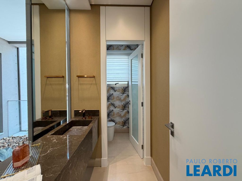 Maravilhoso projeto de extremo bom gosto e requinte.- Terreno: 870 m², área construída: 1.100 m², 5 suítes com closets, Garagem p/ 6 veículos cobertos, armários da cozinha, área de serviço e espaço gourmet, closets, gabinetes dos banheiros e roupeiros da Florence. Geladeira, freezer, forno elétrico, micro-ondas e lava-louças da Viking Profissional banheiros senhor e senhora na suíte principal, churrasqueiras a carvão e a gás, iluminação toda em Led. Sauna seca, ar condicionado Fujitsu. Piscina revestida com pedra Hijal, Esquadrias em alumínio da JMar, Elevador Atlas Schindler para 8 pessoas, Aquecimento solar para água, Reservatórios de água para 20 mil litros. Dispositivos para Wi-Fi distribuídos em toda a casa. Suíte para motorista, Suíte para empregada, Banheiro para prestadores de serviços eventuais. Área gourmet com lareira e fechamento de vidros, que possibilitam abertura total